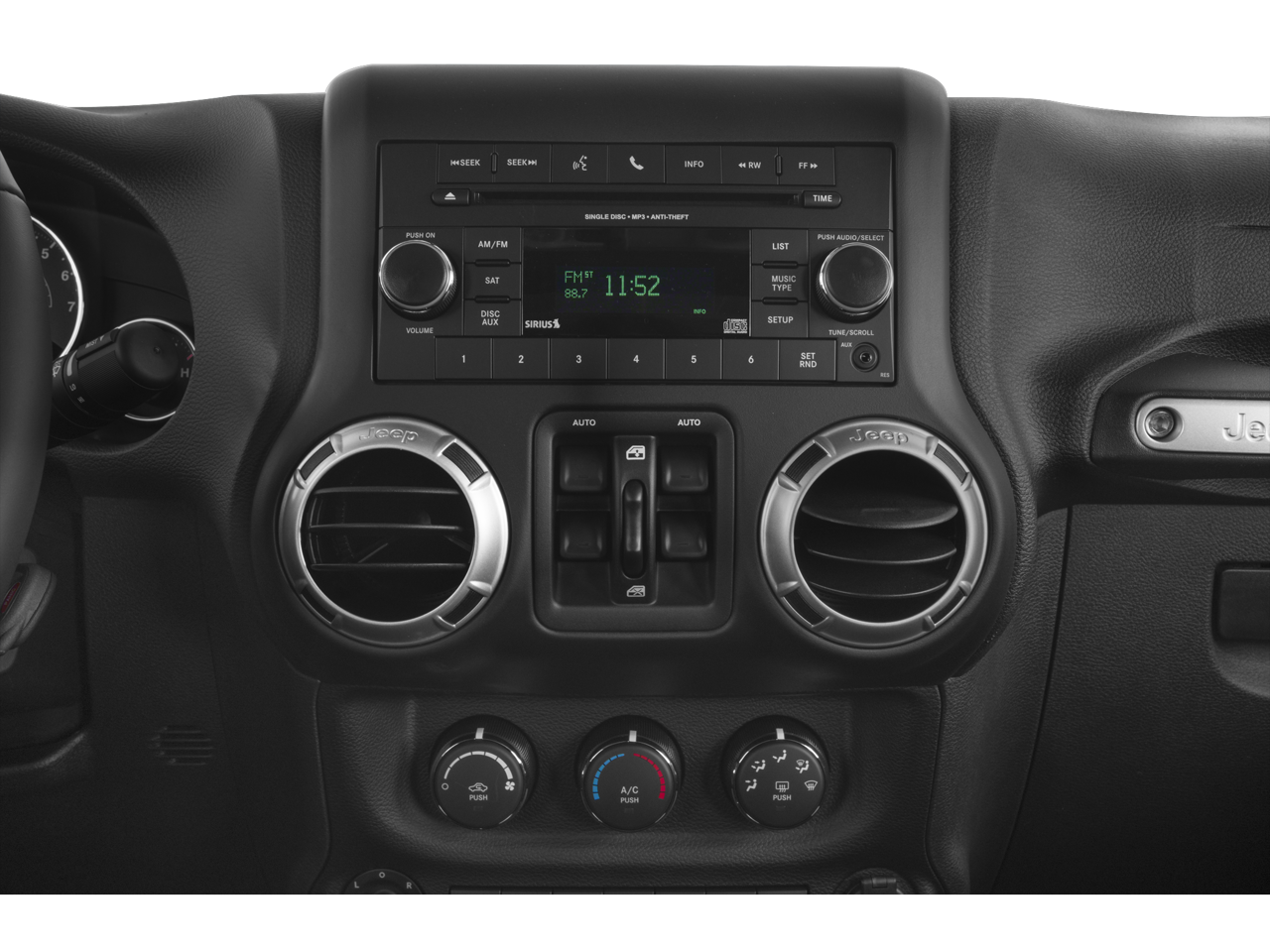 Black 3-Piece Hard Top, Body Color Appliques Front Bumper, Body Color Appliques Rear Bumper, Body Color/Accent Color Grille, Class II Receiver Hitch, Connectivity Group, Delete Sunrider Soft Top, Freedom Panel Storage Bag, Heavy Duty Suspension w/Gas Shocks, Quick Order Package 24G, Rear Window Defroster, Rear Window Wiper/Washer, Tire Pressure Monitoring Display, Trailer Tow Group, Trailer Tow w/4-Pin Connector Wiring, Uconnect Voice Command w/Bluetooth®, Vehicle Information Center, 18" x 7.5" Polished Satin Carbon Wheels, 3.21 Rear Axle Ratio, 4-Wheel Disc Brakes, 8 Speakers, ABS brakes, Air Conditioning, Air Conditioning w/Auto Temperature Control, Air Filtering, Alloy wheels, AM/FM radio: SiriusXM, Audio Jack Input for Mobile Devices, Auto-dimming Rear-View mirror, Brake assist, CD player, Cloth Seats w/Adjustable Head Restraints, Compass, Driver door bin, Driver Height Adjuster Seat, Driver vanity mirror, Dual front impact airbags, Electronic Stability Control, Front anti-roll bar, Front Bucket Seats, Front Center Armrest w/Storage, Front fog lights, Front reading lights, Front Seat Back Map Pockets, Fully automatic headlights, Heated door mirrors, Heated Front Seats, Humidity Sensor, Illuminated entry, Integrated roll-over protection, Leather steering wheel, Low tire pressure warning, Occupant sensing airbag, Outside temperature display, Panic alarm, Passenger door bin, Passenger vanity mirror, Power door mirrors, Power steering, Power windows, R1234YF A/C Refrigerant, Radio data system, Radio: 130, Rear anti-roll bar, Remote keyless entry, Remote Start System, Security system, Speed control, Split folding rear seat, Steering wheel mounted audio controls, Sunrider Soft Top, Tachometer, Tilt steering wheel, Traction control, Trip computer, Variably intermittent wipers, Black 3-Piece Hard Top, Body Color Appliques Front Bumper, Body Color Appliques Rear Bumper, Body Color/Accent Color Grille, Class II Receiver Hitch, Connectivity Group, Delete Sunrider Soft Top, Freedom Panel Storage Bag, Heavy Duty Suspension w/Gas Shocks, Quick Order Package 24G, Rear Window Defroster, Rear Window Wiper/Washer, Tire Pressure Monitoring Display, Trailer Tow Group, Trailer Tow w/4-Pin Connector Wiring, Uconnect Voice Command w/Bluetooth®, Vehicle Information Center.