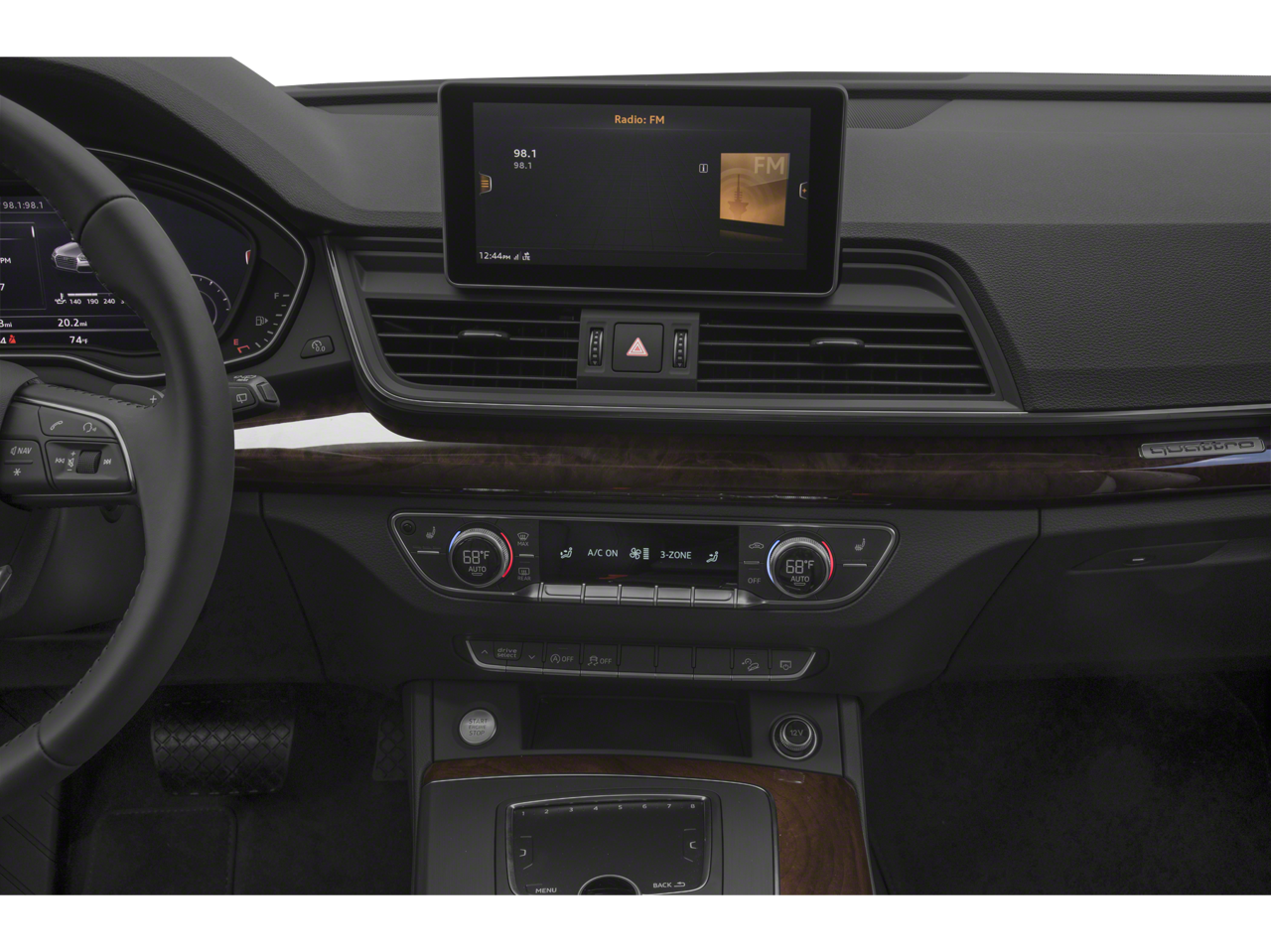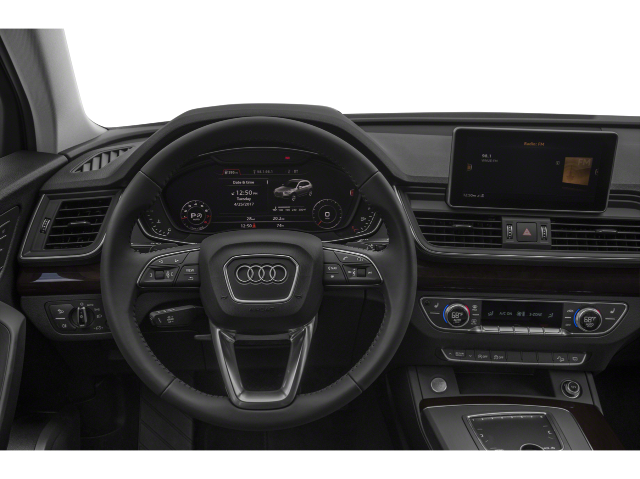 10 Speakers, 4-Wheel Disc Brakes, 5.302 Axle Ratio, ABS brakes, Air Conditioning, Alloy wheels, AM/FM radio, Audi smartphone interface (Apple CarPlay/Android Auto), Auto-dimming Rear-View mirror, Automatic temperature control, Brake assist, Bumpers: body-color, Compass, Delay-off headlights, Driver door bin, Driver vanity mirror, Dual front impact airbags, Dual front side impact airbags, Electronic Stability Control, Emergency communication system: Audi connect CARE, Exterior Parking Camera Rear, Four wheel independent suspension, Front anti-roll bar, Front Bucket Seats, Front Center Armrest, Front dual zone A/C, Front fog lights, Front reading lights, Garage door transmitter: HomeLink, Genuine wood console insert, Genuine wood dashboard insert, Genuine wood door panel insert, Heated 8-Way Power Front Bucket Seats, Heated door mirrors, Heated front seats, High intensity discharge headlights: Xenon plus, Illuminated entry, Leather Seating Surfaces, Leather Shift Knob, Leather steering wheel, Low tire pressure warning, Occupant sensing airbag, Outside temperature display, Overhead airbag, Overhead console, Panic alarm, Passenger door bin, Passenger vanity mirror, Power door mirrors, Power driver seat, Power Liftgate, Power passenger seat, Power steering, Power windows, Radio data system, Radio: Audi Sound System w/7" Display, Rain sensing wipers, Rear air conditioning, Rear anti-roll bar, Rear fog lights, Rear reading lights, Rear seat center armrest, Rear window defroster, Rear window wiper, Remote keyless entry, Roof rack, Security system, Speed control, Speed-sensing steering, Speed-Sensitive Wipers, Split folding rear seat, Spoiler, Steering wheel mounted audio controls, Tachometer, Telescoping steering wheel, Tilt steering wheel, Traction control, Trip computer, Turn signal indicator mirrors, Variably intermittent wipers, Wheels: 18" 5-Double-Spoke Dynamic Design.