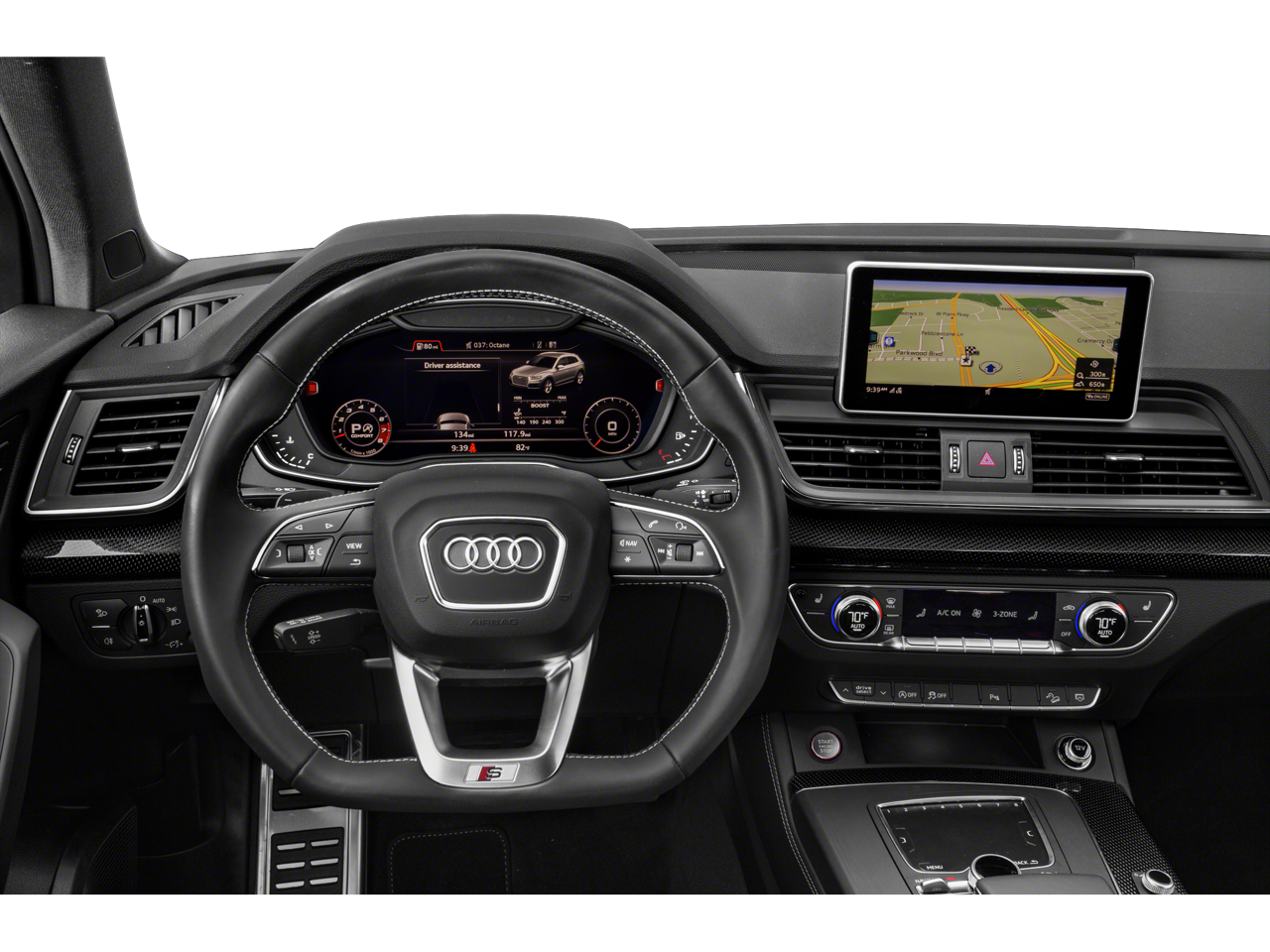 Adaptive Cruise Control w/Traffic Jam Assist, Audi Active Lane Assist, Audi Advanced Key, Audi Connect PRIME & PLUS, Audi Phone Box, Audi Pre-Sense Rear, Audi Side Assist, Audi Virtual Cockpit, Auto-Dimming Power Folding Exterior Mirrors, Bang & Olufsen 3D Sound System, Black Optic Package, Convenience Package, Convenience Plus Package, Driver Assistance Package, Driver Seat Memory, Dual Pane Acoustic Glass for Front Side Windows, Front Seat Ventilation, Head-Up Display, High-Gloss Black Exterior Mirror Housings, Interior Lighting Plus Package, Leatherette Covered Center Console, Manual Rear Side Window Sunshades, Matte Black Roof Rails, Milano Leather Seating Surfaces, Panoramic Sunroof, Park Assist, Parking System Plus (Front/Rear Acoustic Sensors), Power Adjustable Steering Column, Prestige Package, Radio: MMI Navigation Plus w/MMI Touch, Red Brake Calipers, S Sport Package, SiriusXM All Access Service, Sport Adaptive Air Suspension, Sport Rear Differential, Titanium Black Exterior Trim, Top View Camera System, Traffic Sign Recognition, USB Charge Ports for Rear Seats, Warm Weather Package, Wheels: 20" Audi Sport 5-Arm-Rotor Design, 10 Speakers, 3.204 Axle Ratio, 4-Wheel Disc Brakes, ABS brakes, Adaptive suspension, Air Conditioning, All Weather Floor Mats, Alloy wheels, AM/FM radio, AM/FM Stereo, Audi Beam-Rings (DISC), Audi smartphone interface (Apple CarPlay/Android Auto), Auto High-beam Headlights, Auto-dimming Rear-View mirror, Automatic temperature control, Black Privacy Trunk Cover, Brake assist, Bumpers: body-color, Carbon Atlas Inlays, Cargo Mat, Compass, Delay-off headlights, Driver door bin, Driver vanity mirror, Dual front impact airbags, Dual front side impact airbags, Electronic Stability Control, Emergency communication system: Audi connect CARE, Exterior Parking Camera Rear, Four wheel independent suspension, Front anti-roll bar, Front Bucket Seats, Front Center Armrest, Front dual zone A/C, Front fog lights, Front reading lights, Garage door transmitter: HomeLink, Heated door mirrors, Heated Front Seats, Heated front seats, Illuminated entry, Leather Shift Knob, Leather steering wheel, Leather/Alcantara Seating Surfaces, Low tire pressure warning, Occupant sensing airbag, Outside temperature display, Overhead airbag, Overhead console, Panic alarm, Passenger door bin, Passenger vanity mirror, Power door mirrors, Power driver seat, Power Liftgate, Power passenger seat, Power steering, Power windows, Radio data system, Rain sensing wipers, Rear air conditioning, Rear anti-roll bar, Rear fog lights, Rear reading lights, Rear seat center armrest, Rear window defroster, Rear window wiper, Remote keyless entry, Roof rack, Security system, Speed control, Speed-sensing steering, Speed-Sensitive Wipers, Split folding rear seat, Spoiler, Sport steering wheel, Steering wheel mounted audio controls, Tachometer, Telescoping steering wheel, Tilt steering wheel, Traction control, Trip computer, Turn signal indicator mirrors, Variably intermittent wipers, Wheels: 20" x 8" 5-Double-Spoke Star Design, Wheels: 21" x 8" Audi Sport 5-Double-Spoke, Adaptive Cruise Control w/Traffic Jam Assist, Audi Active Lane Assist, Audi Advanced Key, Audi Connect PRIME & PLUS, Audi Phone Box, Audi Pre-Sense Rear, Audi Side Assist, Audi Virtual Cockpit, Auto-Dimming Power Folding Exterior Mirrors, Bang & Olufsen 3D Sound System, Black Optic Package, Convenience Package, Convenience Plus Package, Dr