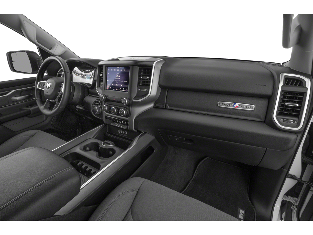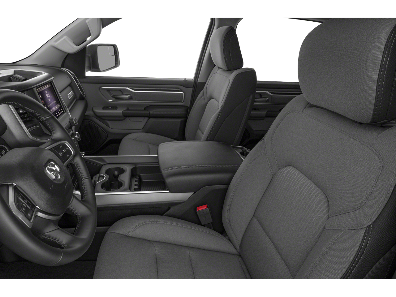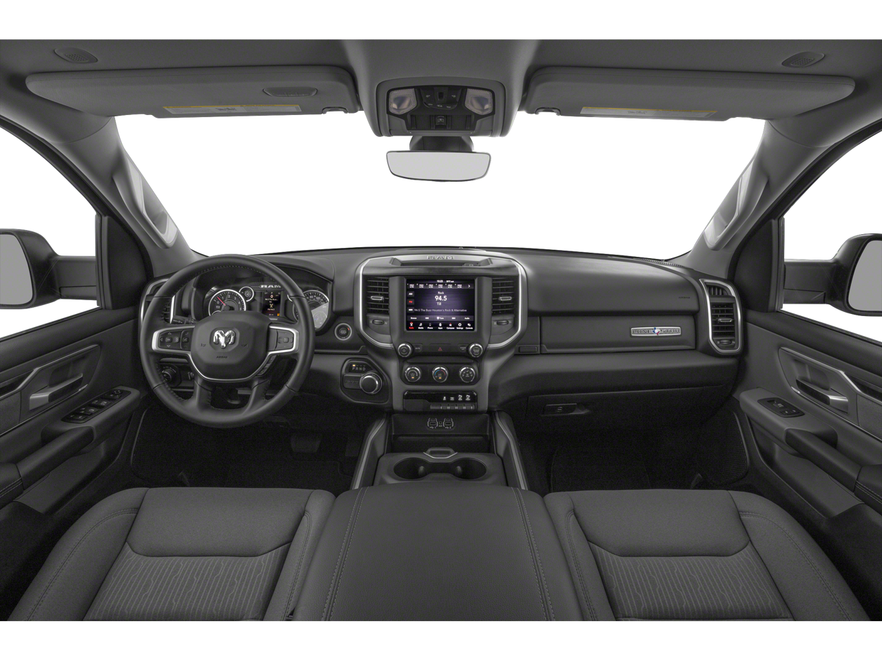 2nd Row In Floor Storage Bins, 3 Rear Seat Head Restraints, 4 Way Front Headrests, 4-Wheel Disc Brakes, 48V Belt Starter Generator, 6 Speakers, ABS brakes, Air Conditioning, AM/FM radio, Anti-Spin Differential Rear Axle, Auto-Dimming Rear-View Mirror, Big Horn IP Badge, Big Horn Level 1 Equipment Group, Black Interior Accents, Black Premium Power Mirrors, Body Color Door Handles, Body Color Front Bumper, Body Color Premium Power Mirrors, Body Color Rear Bumper w/Step Pads, Brake assist, Bucket Seats, Bumpers: chrome, Class IV Receiver Hitch, Cloth Bench Seat, Cluster 3.5" TFT Color Display, Compass, Delay-off headlights, Deluxe Cloth Bucket Seats, Driver door bin, Dual front impact airbags, Dual front side impact airbags, Electronic Stability Control, Foam Bottle Insert (Door Trim Panel), Front & Rear Rubber Floor Mats, Front anti-roll bar, Front Center Armrest w/Storage, Front fog lights, Front reading lights, Front Seat Back Map Pockets, Front wheel independent suspension, Full Length Floor Console, Fully automatic headlights, Glove Box Lamp, GPS Antenna Input, Grille Surround 1 Body Color Texture 2 Black, Heated door mirrors, Illuminated entry, Leather steering wheel, Low tire pressure warning, Manual Adjust 4-Way Front Passenger Seat, Occupant sensing airbag, Outside temperature display, Overhead airbag, Overhead console, Panic alarm, ParkView Rear Back-Up Camera, Passenger door bin, Passenger vanity mirror, Power 4-Way Driver Lumbar Adjust, Power 8-Way Driver Seat, Power Adjustable Pedals, Power door mirrors, Power steering, Power windows, Quick Order Package 25Z Big Horn, Radio data system, Radio: Uconnect 3 w/5" Display, Radio: Uconnect 4 w/8.4" Display, Rear 60/40 Folding Seat, Rear anti-roll bar, Rear Dome w/On/Off Switch Lamp, Rear Power Sliding Window, Rear seat center armrest, Rear step bumper, Rear Window Defroster, Remote keyless entry, Remote Start System, SiriusXM Satellite Radio, Speed control, Split folding rear seat, Sport Appearance Package, Sport Decal, Steering wheel mounted audio controls, Sun Visors w/Illuminated Vanity Mirrors, Tachometer, Telescoping steering wheel, Tilt steering wheel, Traction control, Trip computer, Universal Garage Door Opener, Variably intermittent wipers, Voltmeter, Wheels: 18" x 8" Cast-Aluminum Painted, Wheels: 20" x 9" Aluminum Chrome Clad (WRK).