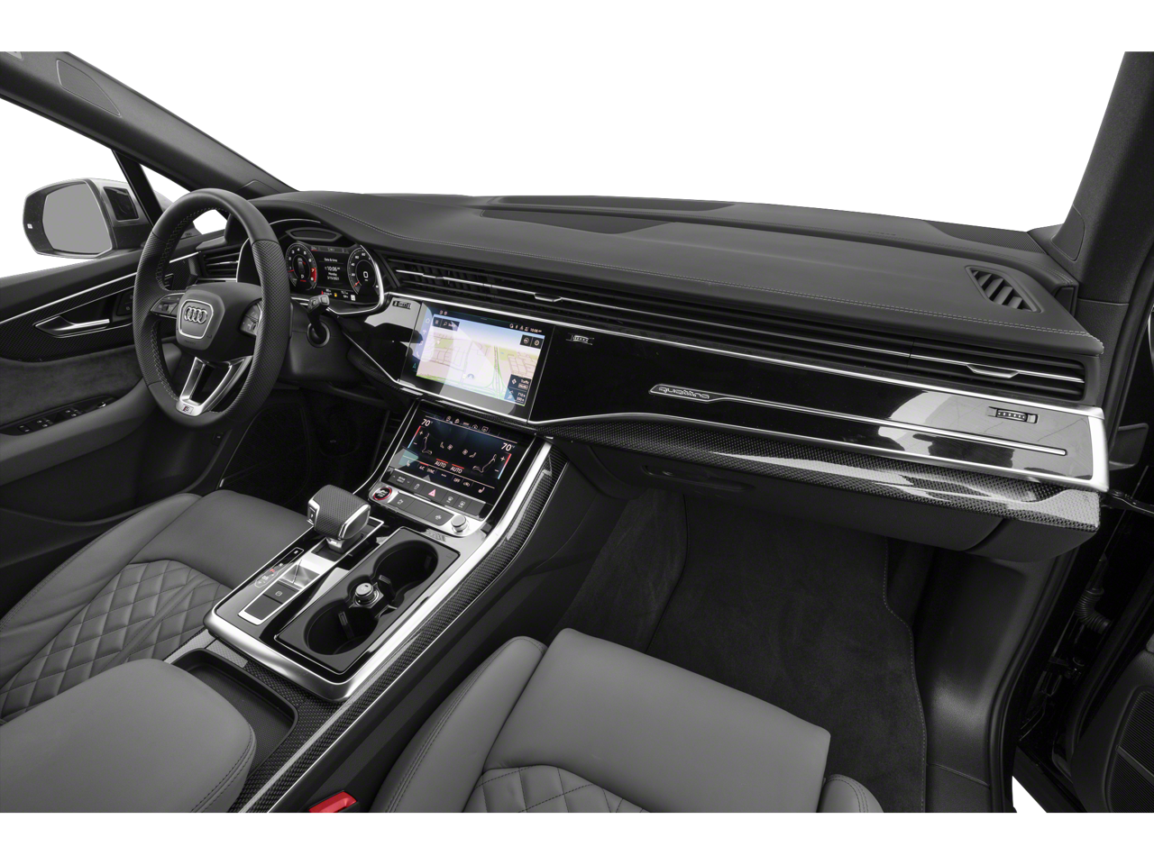 Active Roll Stabilization, Animation for Headlights & Taillights, Bang & Olufsen Advanced Sound System w/3D Sound, Black Dinamica Headliner, Black Optic Package, Contour/Ambient LED Interior Lighting Package, Dual-Pane Acoustic Glass for Side Windows, Executive Package, Extended Leather Package, Exterior Parking Camera Rear, Front Seats w/Ventilation, HD Matrix-Design LED Headlights w/Audi Laser Light, Head-Up Display, Headlight Washer System, Heated Rear Seats, High-Gloss Black Exterior Elements, Intersection Assist, Laser Headlights Package, Luxury Package, Massage Function for Front Seats, Power Liftgate, Power moonroof: Panoramic, Power Soft-Closing Doors, Prestige Package, Red Brake Calipers, Remote Park Assist Plus, Sport Package, Sport Rear Differential, Sports Exhaust Resonator Kit, Sunshades for Rear Door Side Windows & Tailgate, Tow Hitch Receiver, Towing 7 Pin Connector, Towing Package, Traffic Sign Recognition, 19 Speakers, 3rd row seats: bench, 4-Wheel Disc Brakes, ABS brakes, Adaptive suspension, Air Conditioning, Alloy wheels, AM/FM radio: SiriusXM w/ 360L, Auto High-beam Headlights, Auto-dimming door mirrors, Auto-dimming Rear-View mirror, Auto-leveling suspension, Automatic temperature control, Axle Ratio: TBD, Bang & Olufsen Premium Sound System, Brake assist, Bumpers: body-color, Compass, Delay-off headlights, Diamond Stitched Valcona Leather Seat Trim, Driver door bin, Driver vanity mirror, Dual front impact airbags, Dual front side impact airbags, Electronic Stability Control, Emergency communication system: Audi connect CARE, Four wheel independent suspension, Front anti-roll bar, Front Bucket Seats, Front Center Armrest, Front dual zone A/C, Front fog lights, Front reading lights, Fully automatic headlights, Garage door transmitter: HomeLink, Heated door mirrors, Heated Front S Sport Seats, Heated front seats, Heated steering wheel, Illuminated entry, Leather Shift Knob, Leather steering wheel, Low tire pressure warning, Memory seat, Navigation system: Audi MMI Navigation plus with Touch Response, Occupant sensing airbag, Outside temperature display, Overhead airbag, Overhead console, Panic alarm, Passenger door bin, Passenger vanity mirror, Power door mirrors, Power driver seat, Power passenger seat, Power steering, Power windows, Radio data system, Rain sensing wipers, Rear air conditioning, Rear anti-roll bar, Rear dual zone A/C, Rear fog lights, Rear reading lights, Rear seat center armrest, Rear side impact airbag, Rear window defroster, Rear window wiper, Reclining 3rd row seat, Remote keyless entry, Roof rack: rails only, Security system, Speed control, Speed-sensing steering, Split folding rear seat, Spoiler, Steering wheel memory, Steering wheel mounted audio controls, Tachometer, Telescoping steering wheel, Tilt steering wheel, Traction control, Trip computer, Turn signal indicator mirrors, Variably intermittent wipers, Wheels: 21" 5-Twin-Spoke V Design, Active Roll Stabilization, Animation for Headlights & Taillights, Bang & Olufsen Advanced Sound System w/3D Sound, Black Dinamica Headliner, Black Optic Package, Contour/Ambient LED Interior Lighting Package, Dual-Pane Acoustic Glass for Side Windows, Executive Package, Extended Leather Package, Exterior Parking Camera Rear, Front Seats w/Ventilation, HD Matrix-Design LED Headlights w/Audi Laser Light, Head-Up Display, Headlight Washer System, Heated Rear Seats, High-Gloss Black Exterior Elements, Intersection Assist, Laser Headlights Package, Luxury Package, Massage Function for Front Seats, Power Liftgate, Power moonroof: Panoramic, Power Soft-Closing Doors, Prestige Package, Red Brake Calipers, Remote Park Assist Plus, Sport Package, Sport Rear Differential, Sports Exhaust Resonator Kit, Sunshades for Rear Door Side Windows & Tailgate, Tow Hitch Receiver, Towing 7 Pin Connector, Towing Package, Traffic Sign Recognition.