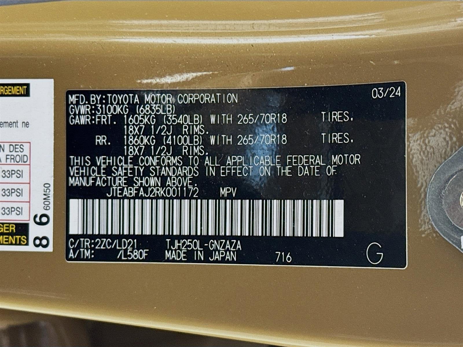 - Front Tire Size: P265/70SR18