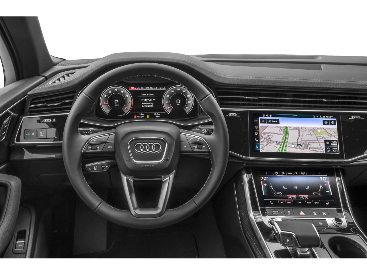 21" Wheel Package, Anthracite Gray Audi Rings, Bang & Olufsen Premium Sound System with 3D Sound, Black Door Blades, Black Exterior Trim, Black Grille, Black Optic Package, Black Roof Rails, Black Window Surrounds, Convenience Package, Dark Chrome Exhaust Tips, Exterior Parking Camera Rear, Heated Steering Wheel, Illuminated Door Sills, LED Interior Lighting Package Plus, Navigation system: Audi MMI Navigation plus with Touch Response, Power Liftgate, Power moonroof: Panoramic, Premium Plus Package, Top View Camera System, Wheels: 20" 5-Double-Spoke, Wheels: 20" 5-Double-Spoke Bicolor Finish, Wheels: 21" 10-Spoke-Star Design Bi-Color, Wireless Phone Charging Pad, 10 Speakers, 3rd row seats: bench, 4-Wheel Disc Brakes, 7-Pin Adapter, ABS brakes, Air Conditioning, Alloy wheels, AM/FM radio: SiriusXM w/360L, Audi Beam Rings, Auto High-beam Headlights, Auto-dimming door mirrors, Auto-dimming Rear-View mirror, Automatic temperature control, Brake assist, Bumpers: body-color, Compass, Delay-off headlights, Driver door bin, Driver vanity mirror, Dual front impact airbags, Dual front side impact airbags, Electronic Stability Control, Emergency communication system: Audi connect CARE, Four wheel independent suspension, Front anti-roll bar, Front Bucket Seats, Front Center Armrest, Front dual zone A/C, Front fog lights, Front reading lights, Fully automatic headlights, Garage door transmitter: HomeLink, Genuine wood door panel insert, Heated door mirrors, Heated Front Bucket Seats, Heated front seats, Illuminated entry, Leather Seating Surfaces, Leather Shift Knob, Leather steering wheel, Low tire pressure warning, Memory seat, Occupant sensing airbag, Outside temperature display, Overhead airbag, Overhead console, Panic alarm, Passenger door bin, Passenger vanity mirror, Power door mirrors, Power driver seat, Power passenger seat, Power steering, Power windows, Privacy Trunk Cover, Radio data system, Radio: Audi Sound System, Rain sensing wipers, Rear air conditioning, Rear anti-roll bar, Rear fog lights, Rear reading lights, Rear seat center armrest, Rear side impact airbag, Rear window defroster, Rear window wiper, Reclining 3rd row seat, Remote keyless entry, Security system, Speed control, Speed-sensing steering, Split folding rear seat, Spoiler, Steering wheel memory, Steering wheel mounted audio controls, Tachometer, Telescoping steering wheel, Tilt steering wheel, Traction control, Trailer Hitch, Trip computer, Turn signal indicator mirrors, Variably intermittent wipers, Wheels: 19" 5-Arm-Star Design, 21" Wheel Package, Anthracite Gray Audi Rings, Bang & Olufsen Premium Sound System with 3D Sound, Black Door Blades, Black Exterior Trim, Black Grille, Black Optic Package, Black Roof Rails, Black Window Surrounds, Convenience Package, Dark Chrome Exhaust Tips, Exterior Parking Camera Rear, Heated Steering Wheel, Illuminated Door Sills, LED Interior Lighting Package Plus, Navigation system: Audi MMI Navigation plus with Touch Response, Power Liftgate, Power moonroof: Panoramic, Premium Plus Package, Top View Camera System, Wheels: 20" 5-Double-Spoke, Wheels: 20" 5-Double-Spoke Bicolor Finish, Wheels: 21" 10-Spoke-Star Design Bi-Color, Wireless Phone Charging Pad.
