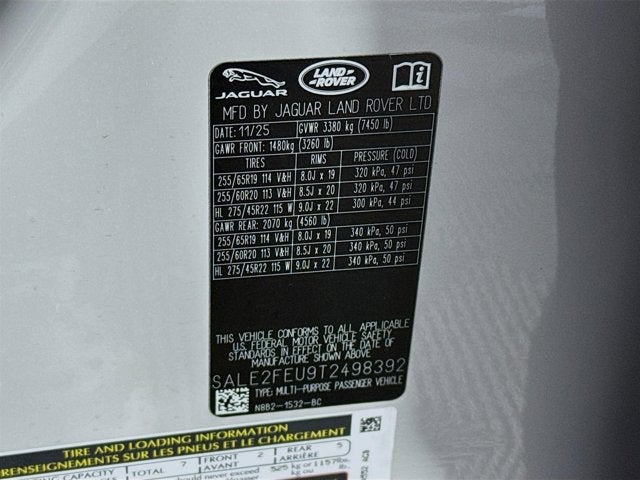 - Front Tire Size: P255/60VR20